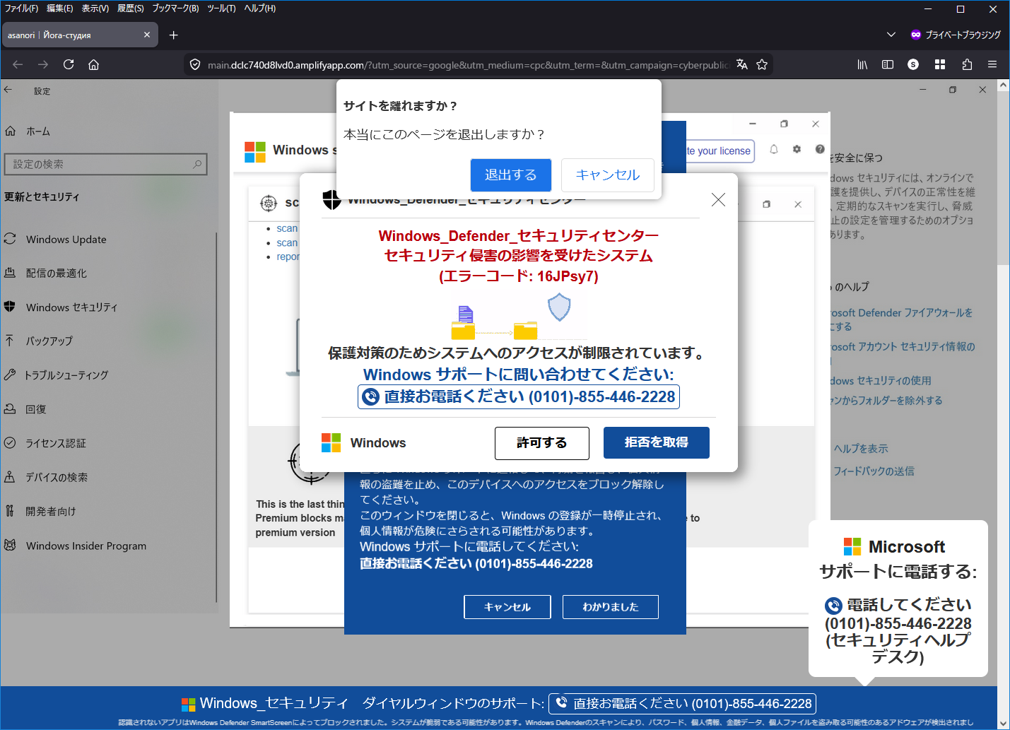 クッキーについてになり放置をしておくと、いつものサポート詐欺へ転送されます。